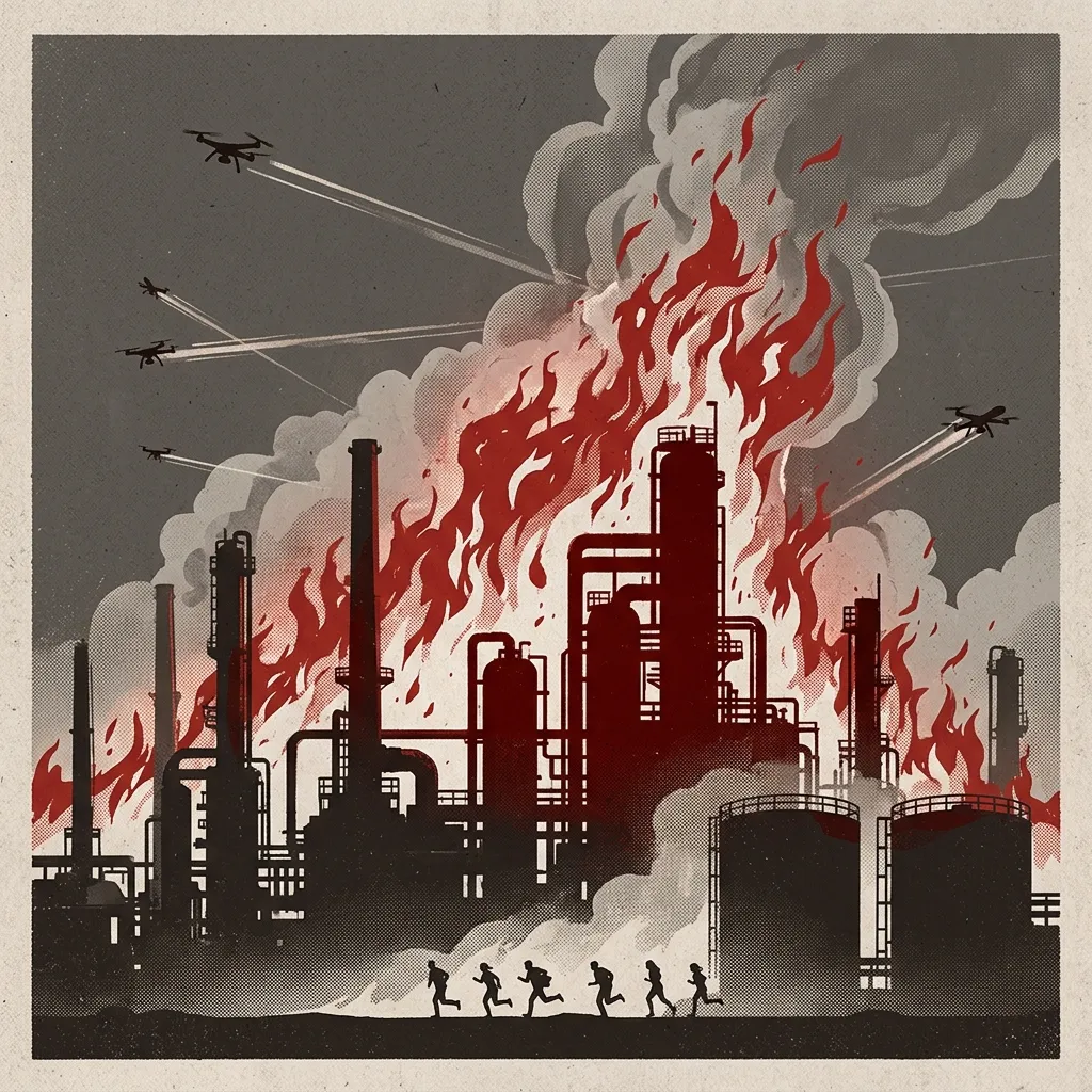 Local residents reported explosions and air defense activity beginning around 2 a.m., with some telling Russian Telegram channel Ostorozhno Novosti that drone attacks continued for several hours. Ukrainian Telegram channels published footage showing both the marine terminal attack and the resulting refinery fire, though these sources were not independently verified by the reporting outlets.
